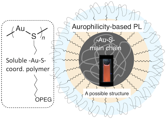 - Herein we report the synthesis of Au(I) thiolate coordination polymers with PEGylated side chains in water, highlighting significant effects of the alkyl spacer to promote the size growth and PL evolution associated with the aurophilic interactions. Such a behavior was specifically observed when a sufficiently long alkyl spacer is implanted, indicating critical roles of the self-organization of the alkyl segments.